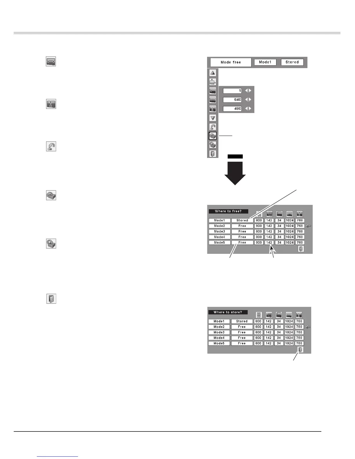 To store adjusted data, move the red framed pointer