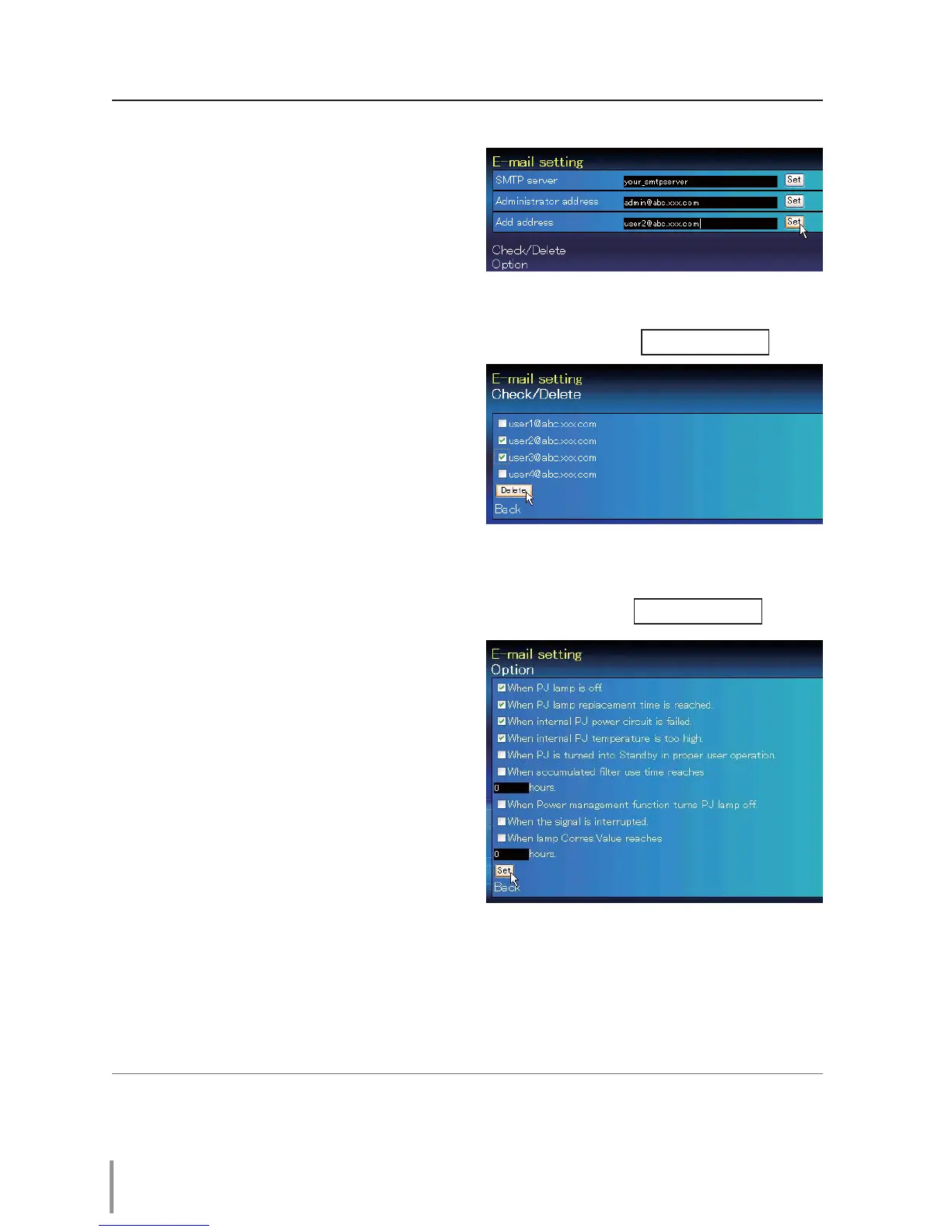 "When PJ lamp is off" signifies the lamp goes out without user operation. "When PJ is turned into