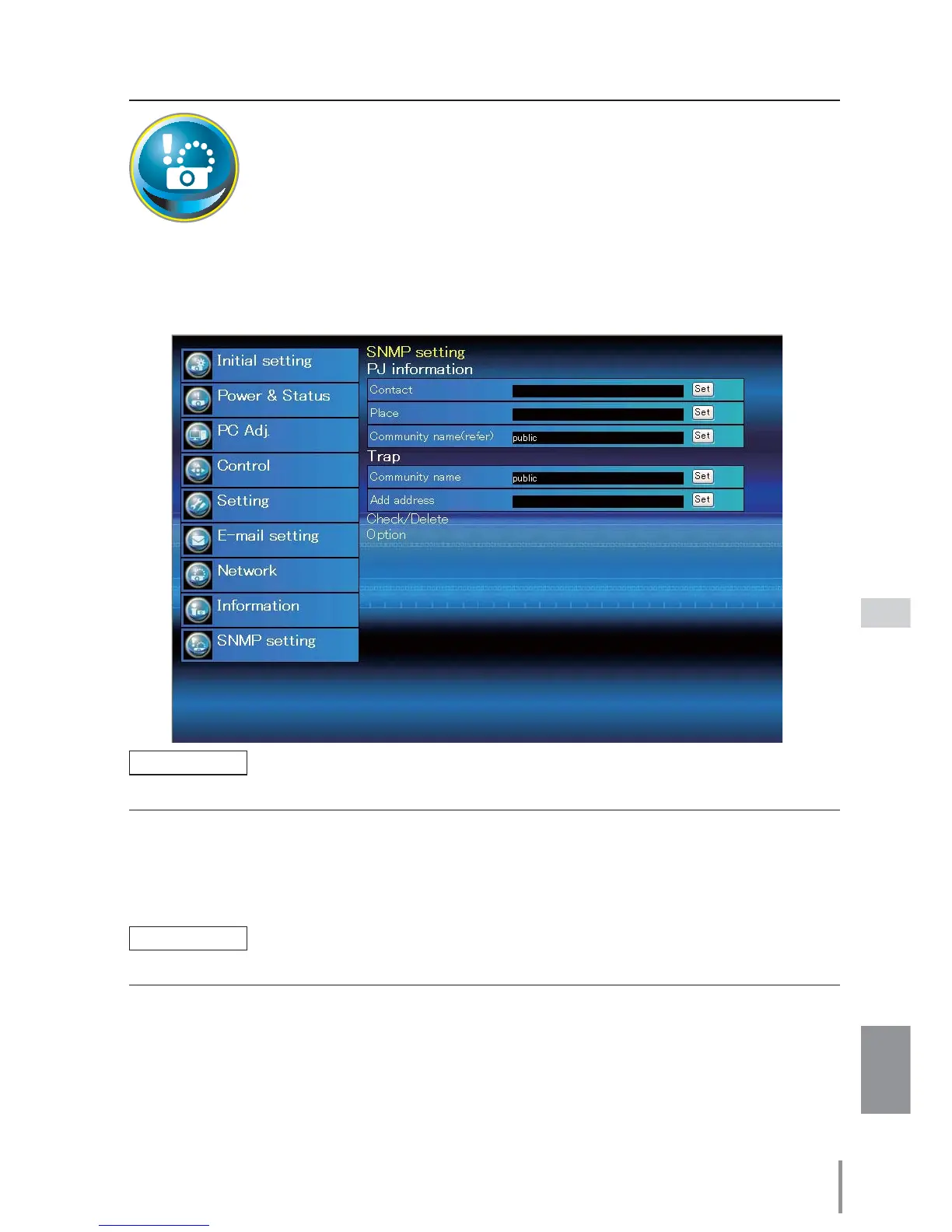 write). This projector allows to use Refer (read only) only. The SNMP message informs the pro-