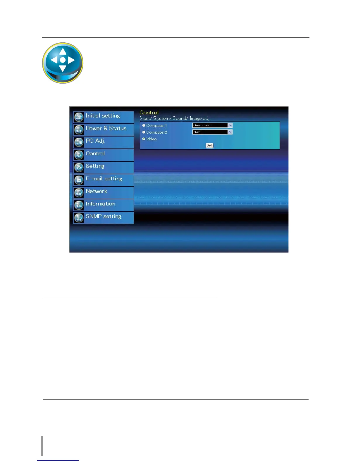 This function is to select the input mode and source mode of the projector. Click Set but-