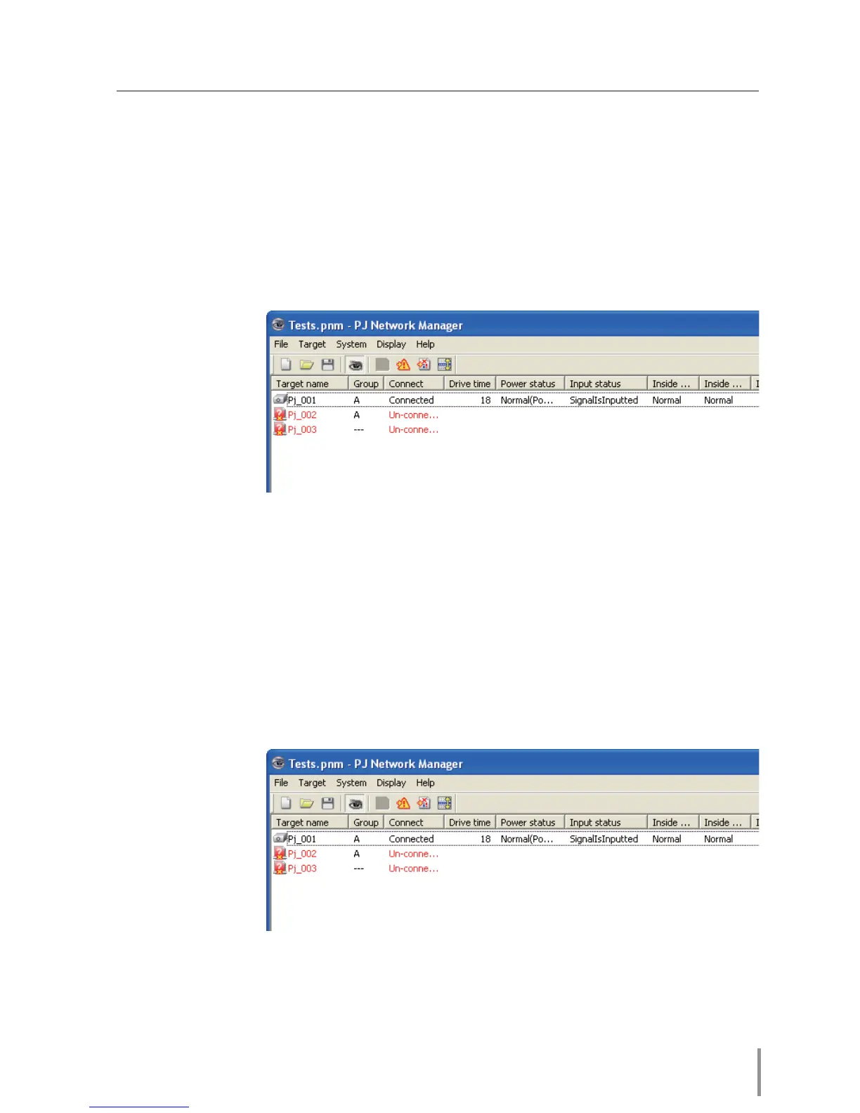 If the abnormality or connection error happens on the target, PJ Network Manager indi-