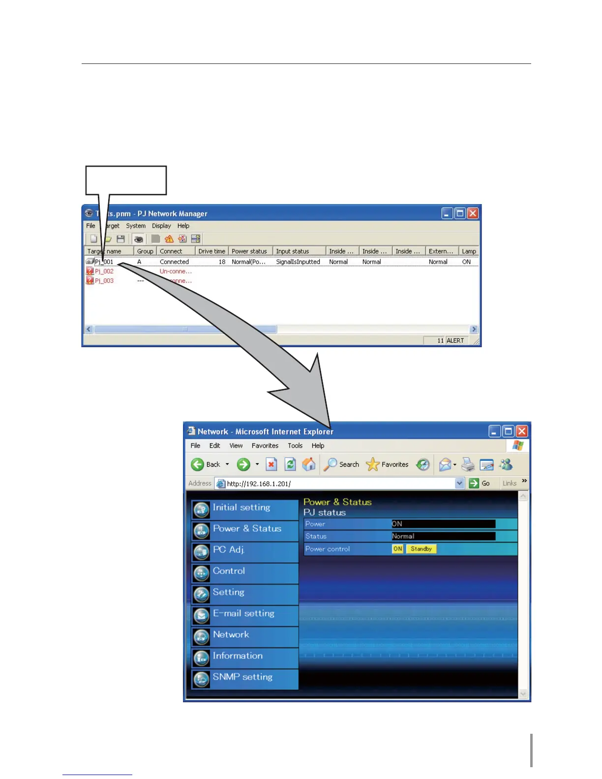 You can control and set up the projector remotely by using the web browser. For the fur-