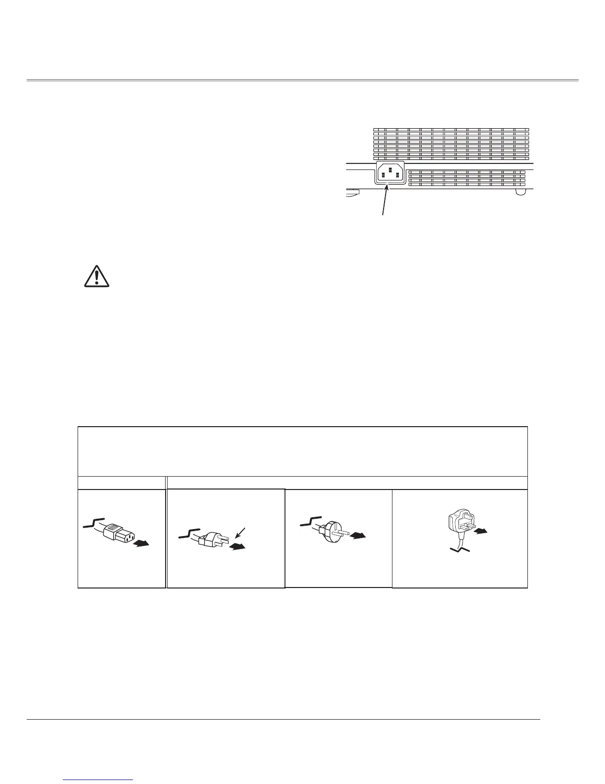 Confirm the AC plug type with the chart below and proper AC power cord must be used.