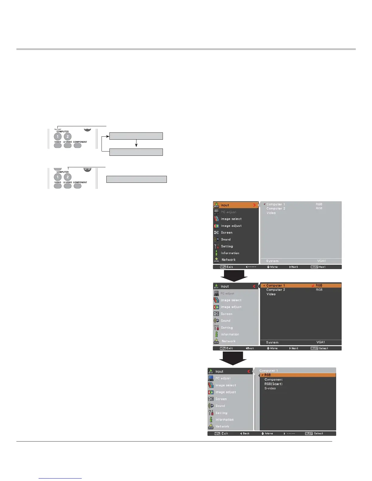 Choose either Computer 1(RGB) or Computer 2(RGB) by pressing the COMPUTER 1 or Computer 2 button