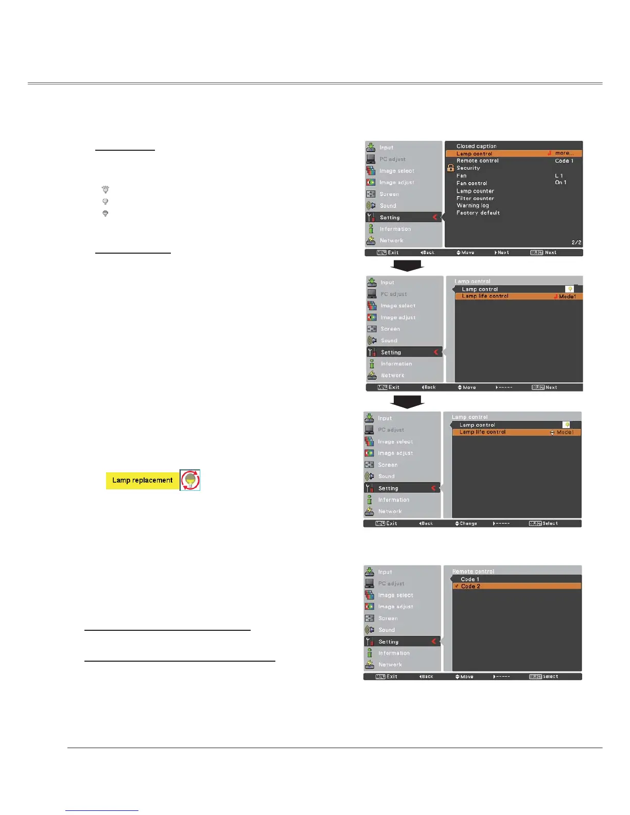 Eco ............ Lower brightness reduces the lamp