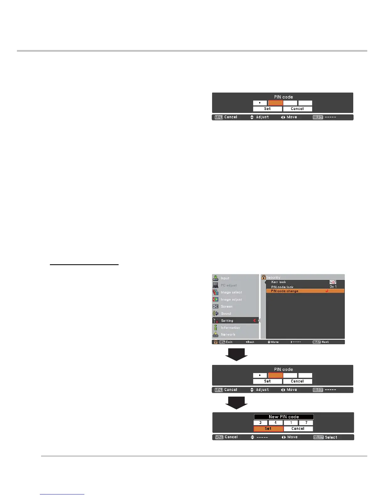 number. Press the SELECT button to select PIN code