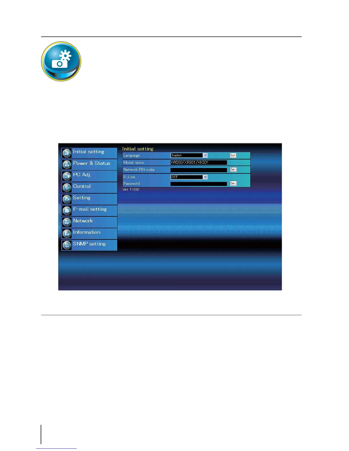 Click Initial Setting on the main menu to display the initial setting page.