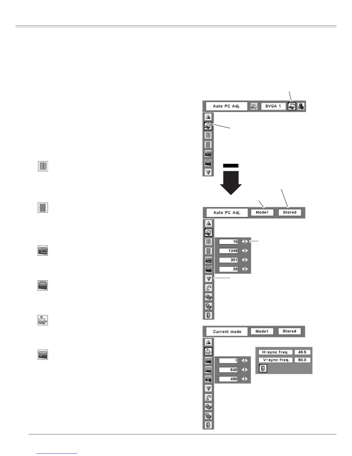 this projector. Manual PC Adjustment enables you to precisely adjust several parameters to match