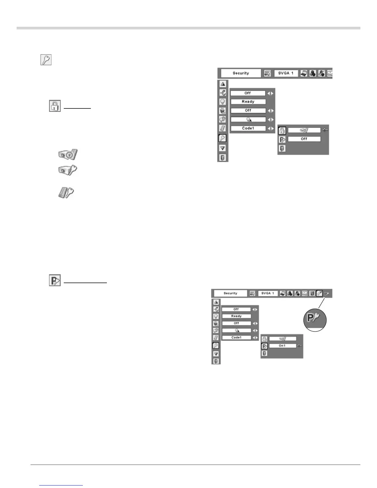 code lock function to set the security for the projector