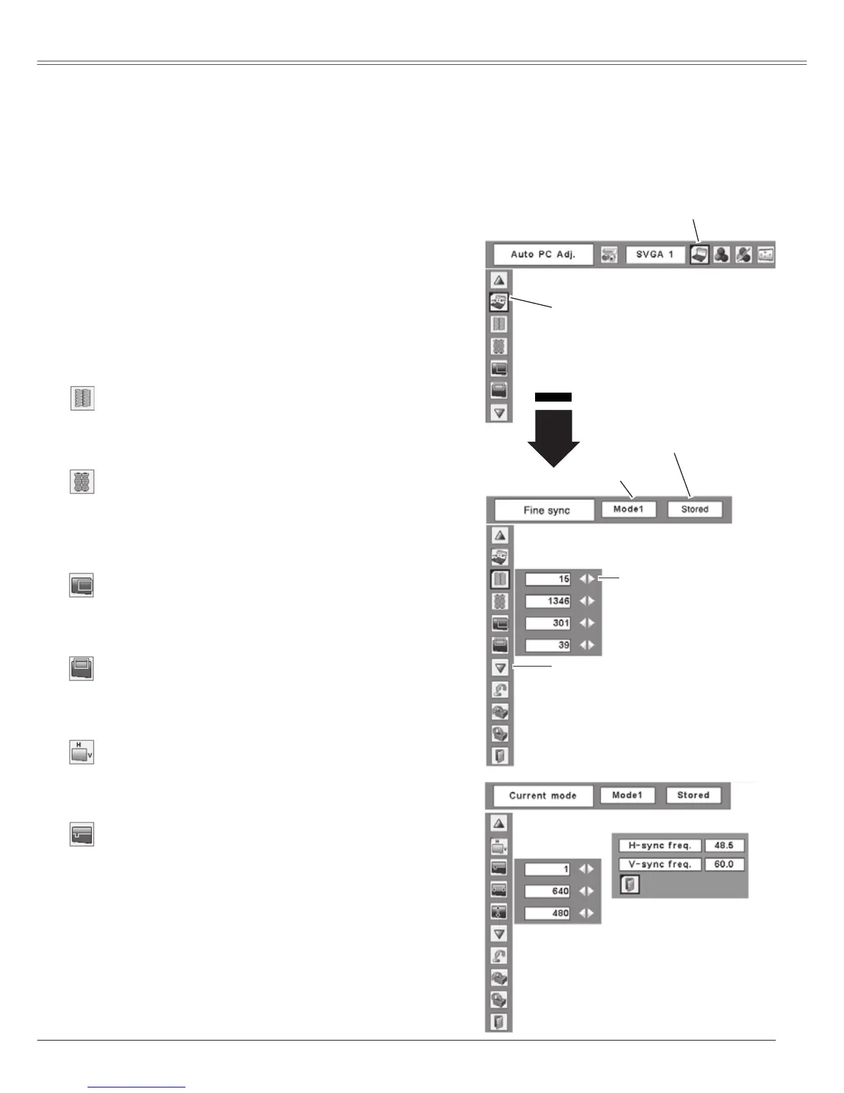 projector. Manual PC Adjustment enables you to precisely adjust several parameters to match those signal