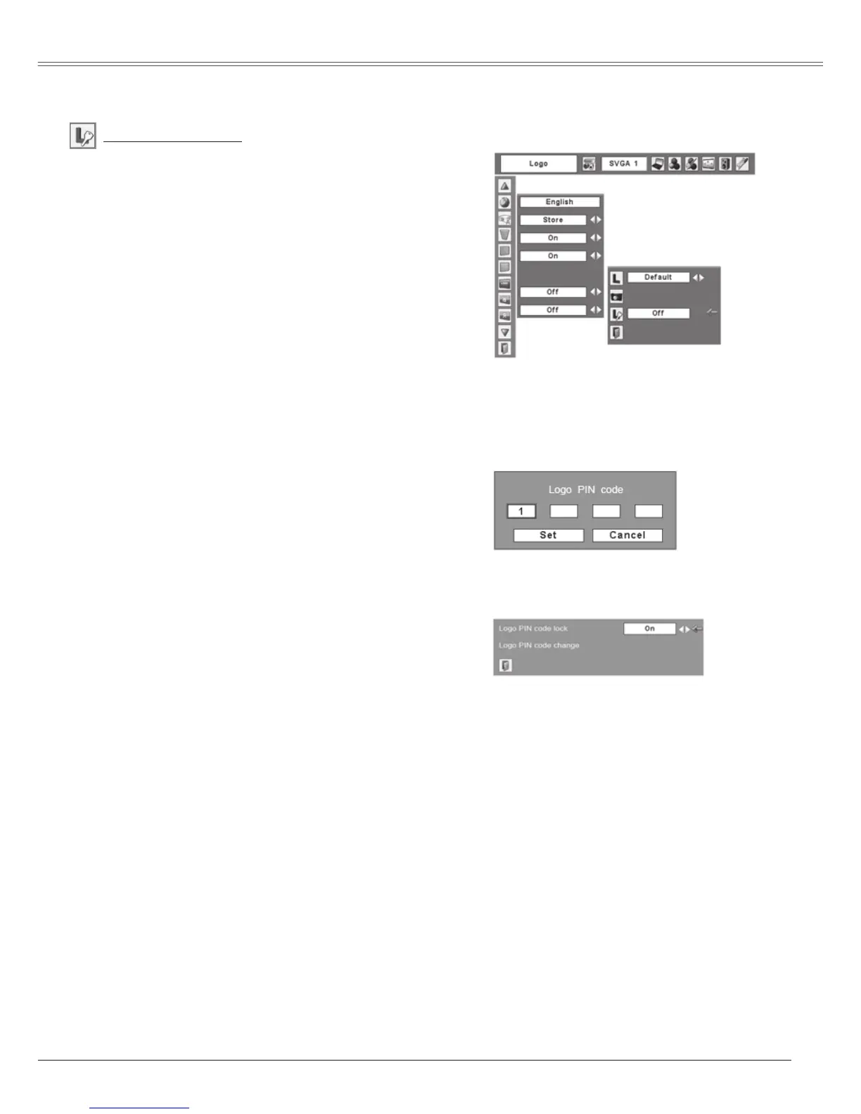 the Logo PIN code setting. For details on PIN code