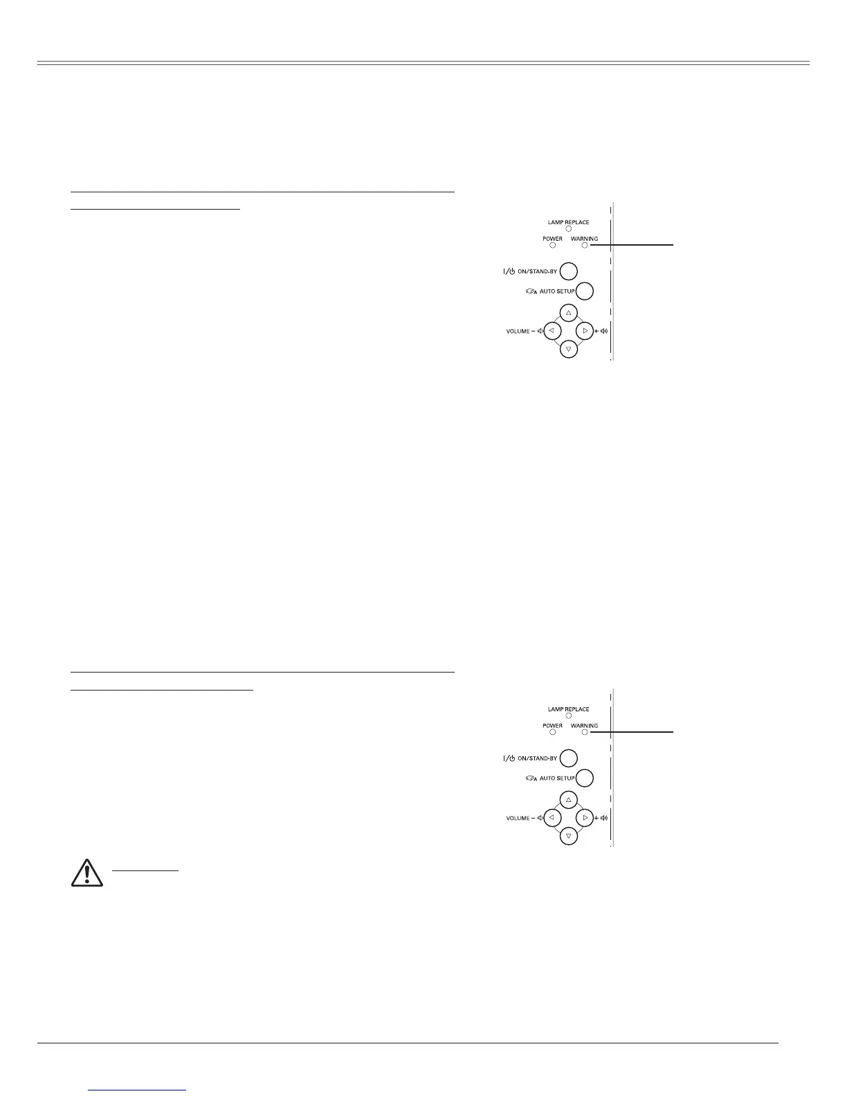 The WARNING indicator shows the state of the function which protects the projector. Check the state of the