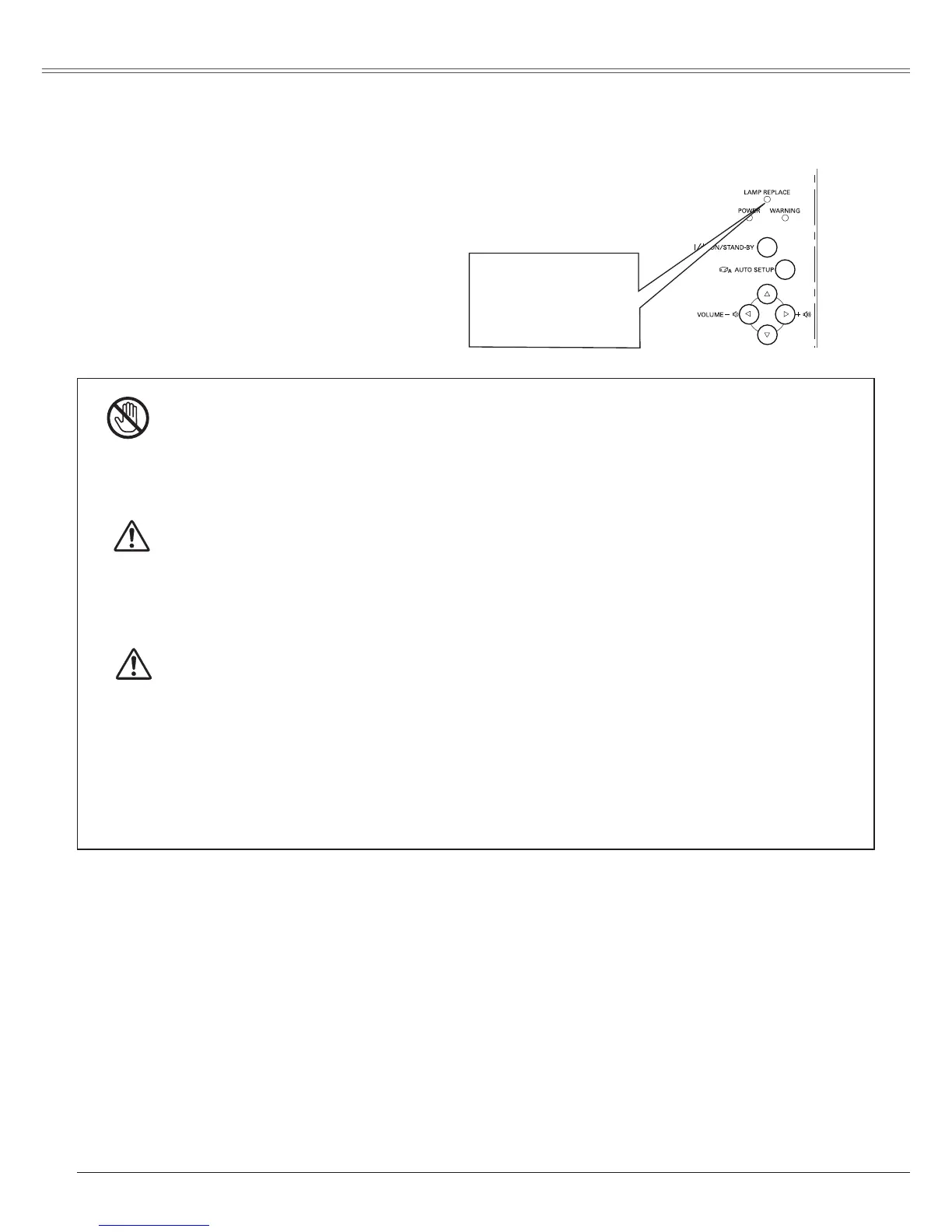 it. Remove the lamp cover gently. Small pieces of glass may fall out when the lamp cover is opened. If
