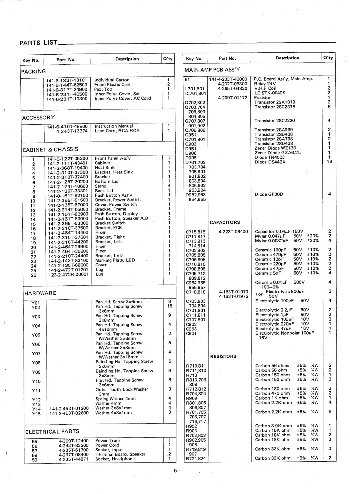 Sanyo PLUS P20 - Parts List; Packing; Accessory; Cabinet & Chassis