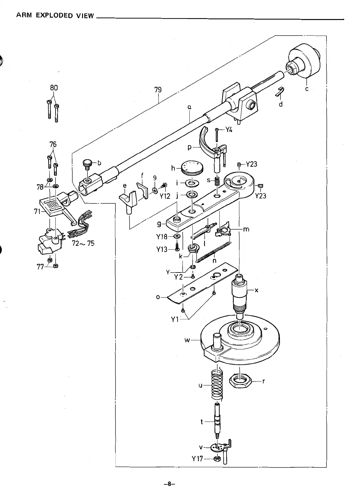 Sanyo PLUS Q50 - Tonearm Exploded View; Tonearm Component Breakdown