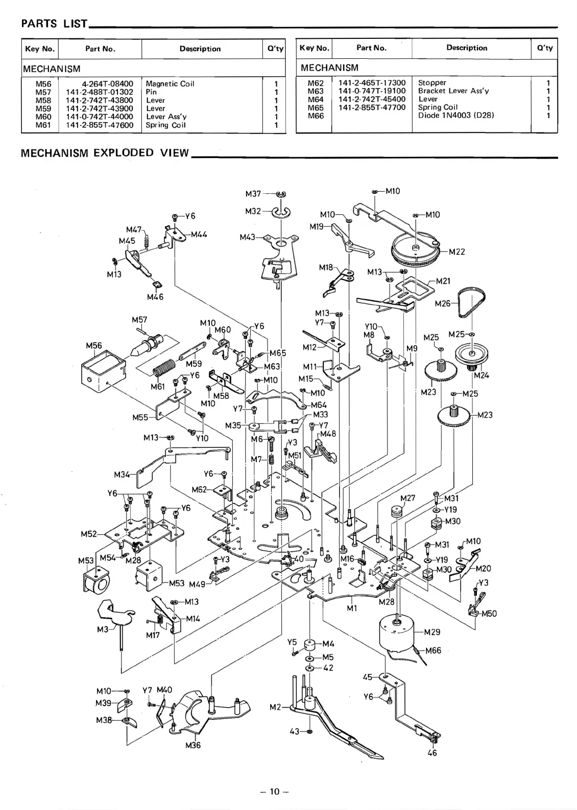 Sanyo PLUS Q50 - Mechanism Parts and View; Mechanism Component List; Mechanism Exploded Diagram
