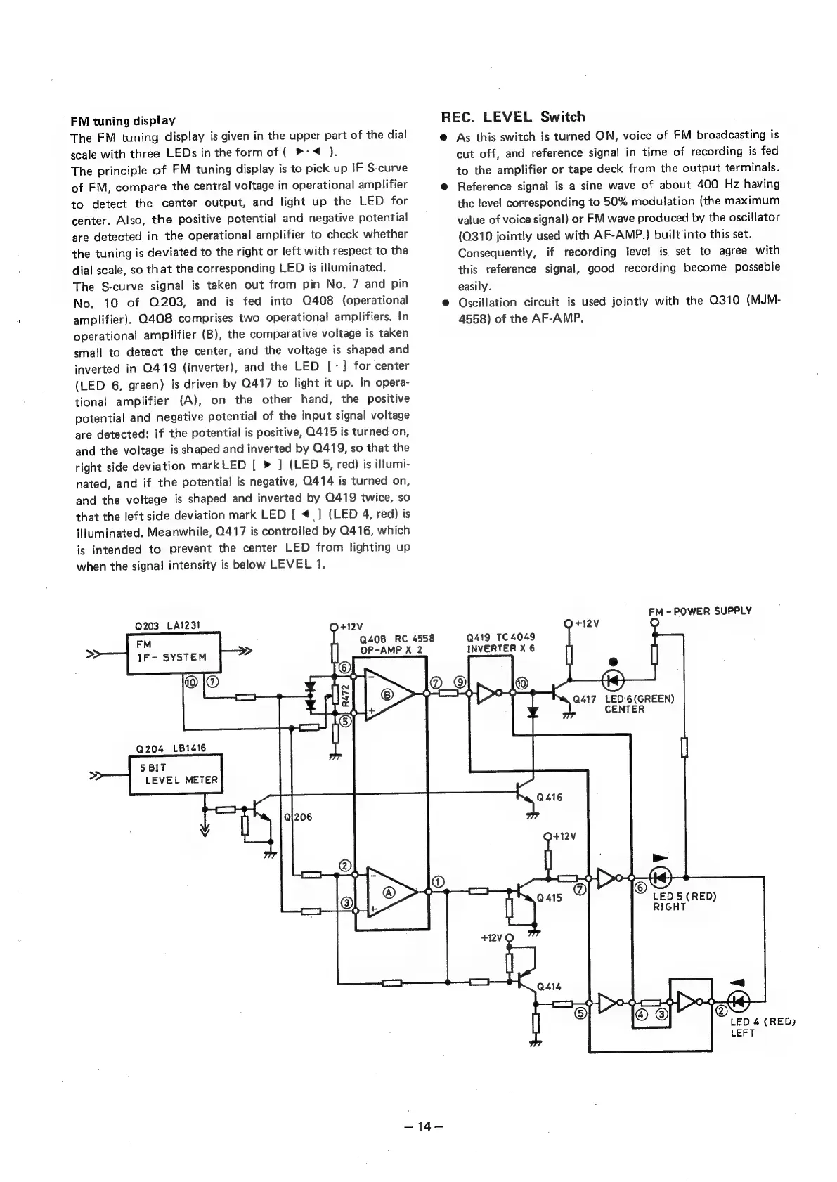 Sanyo PLUS T35 - FM Tuning Display and Recording Level; FM Tuning Display Operation; REC. LEVEL Switch Function