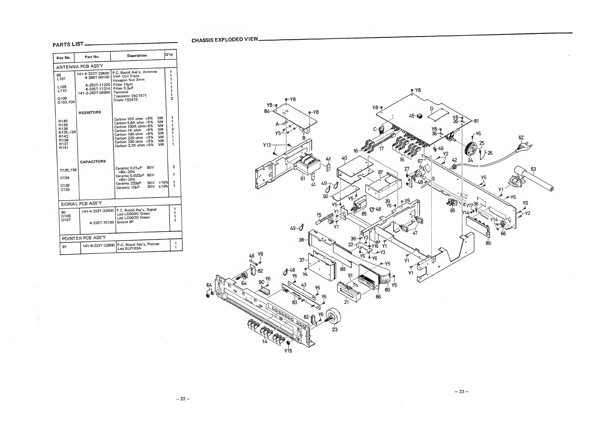 Sanyo PLUS T35 - Parts List (Continued); Antenna PCB Components List; Signal PCB Components List; Pointer PCB Components List