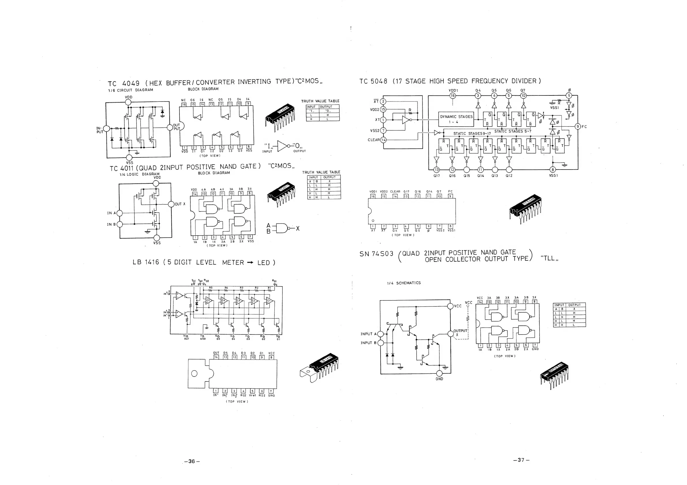 Sanyo PLUS T35 - Integrated Circuit Logic Diagrams; TC 4049 Hex Buffer;Converter Logic; TC 4011 Quad NAND Gate Logic; LB 1416 5-Digit Level Meter Logic