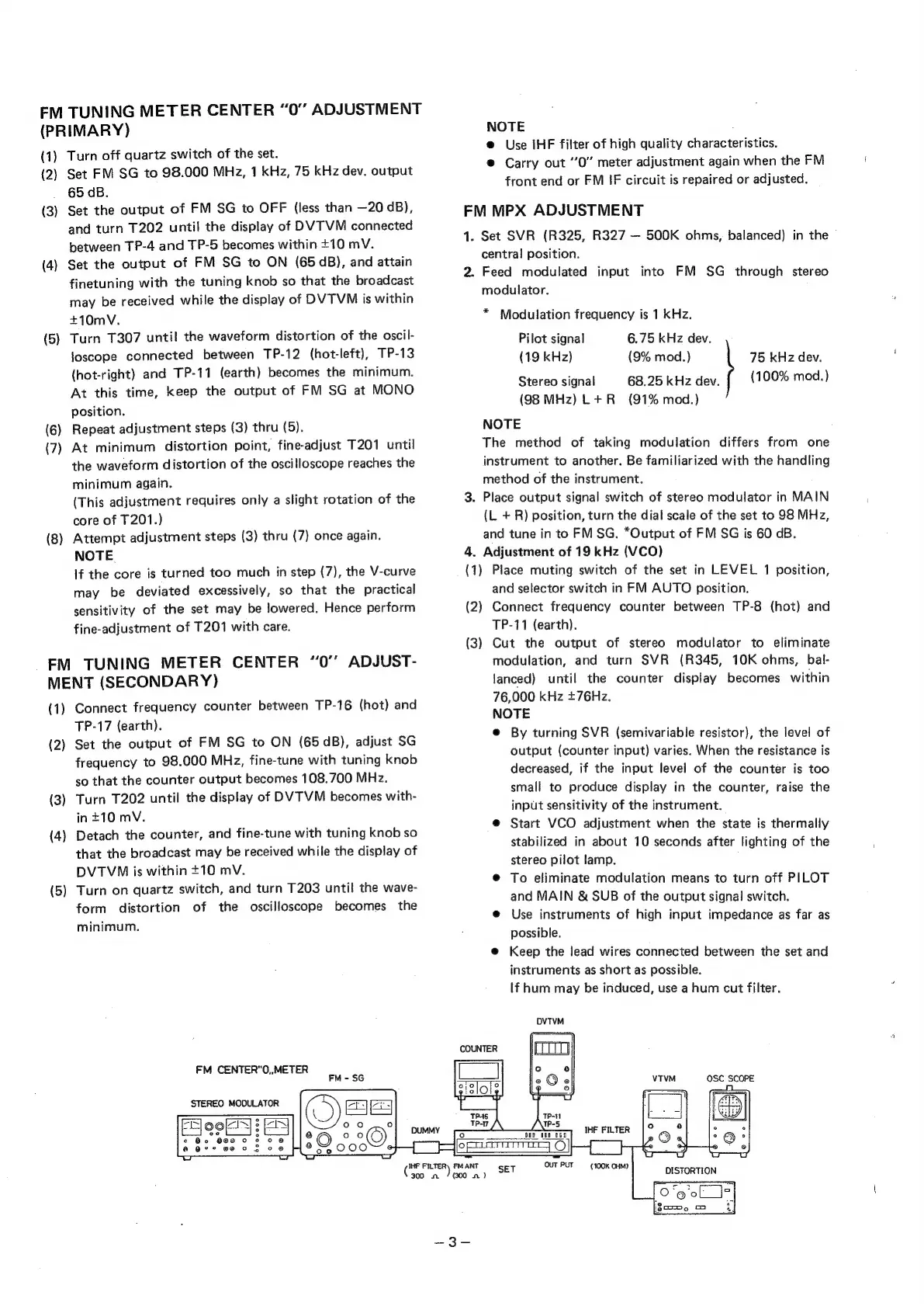 Sanyo PLUS T35 - FM Tuning Meter and MPX Adjustments; FM Tuning Meter Center 0 Adjustment (Primary); FM Tuning Meter Center 0 Adjustment (Secondary); FM MPX Adjustment