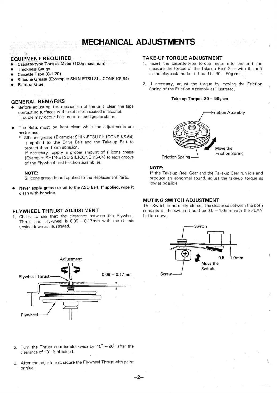 Sanyo RD 203 - Mechanical Adjustments; Equipment and General Remarks; Take-Up Torque Adjustment; Flywheel Thrust Adjustment