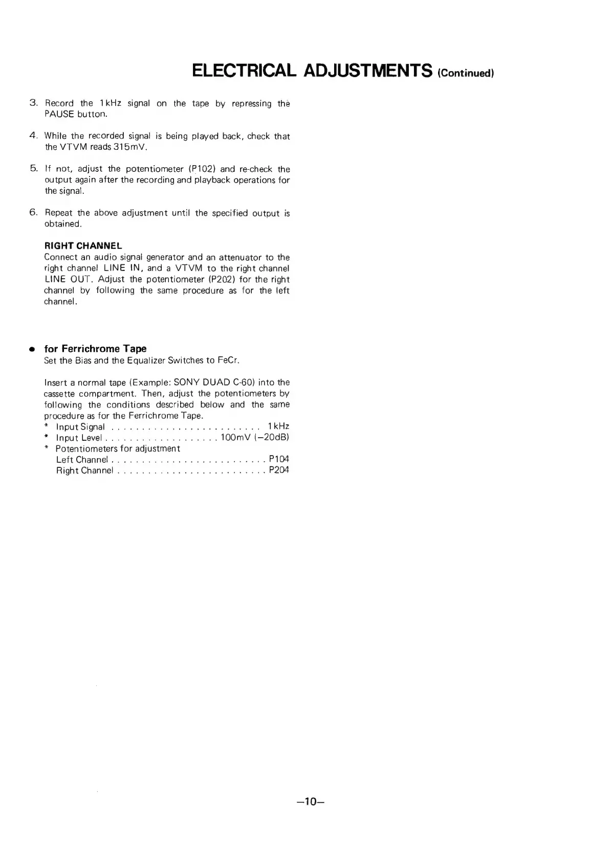 Sanyo RD 30 - Ferrichrome Tape Adjustments; Ferrichrome Tape Calibration; Ferrichrome Right Channel Calibration