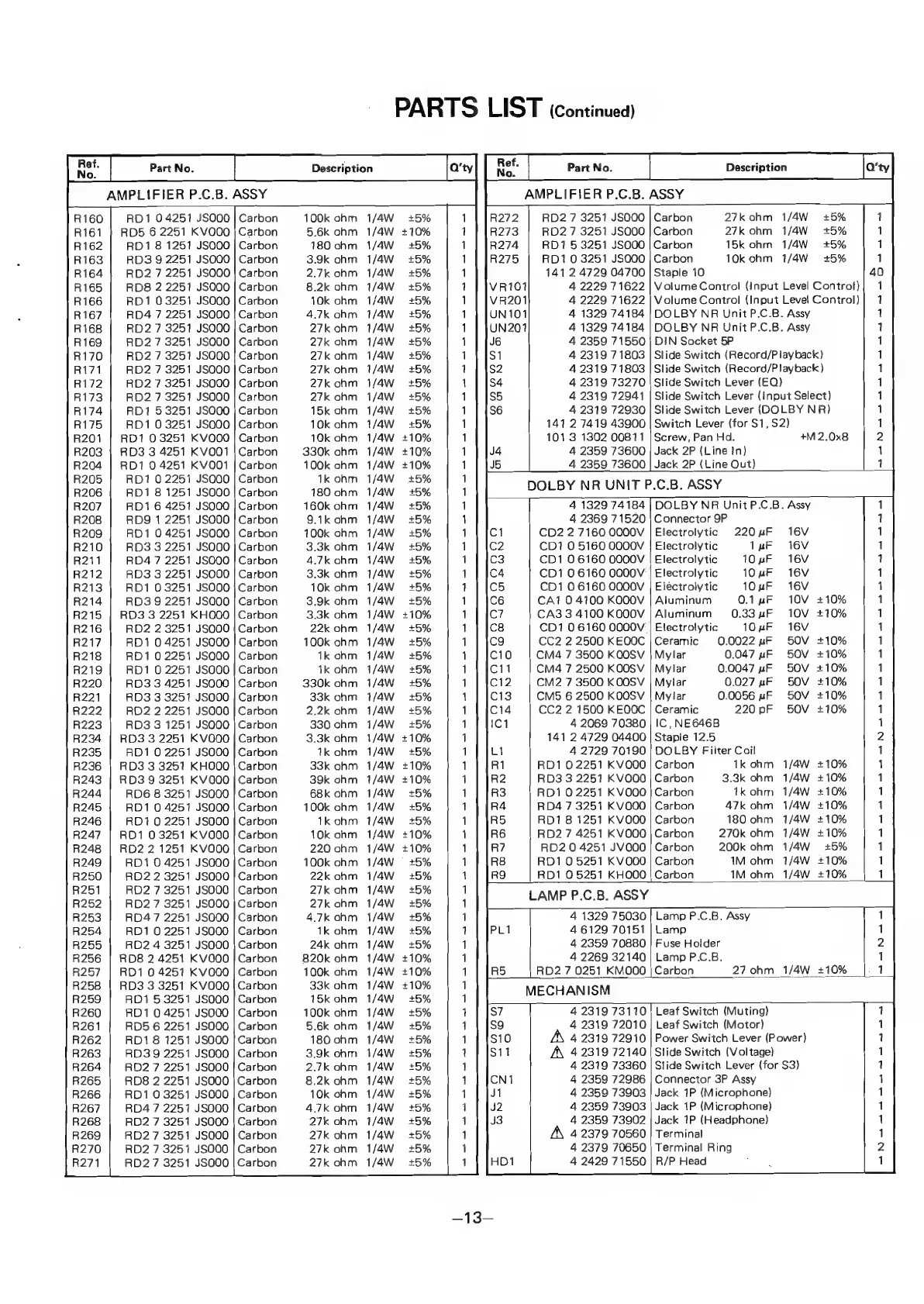 Sanyo RD 30 - Circuit Board and Mechanism Parts; Amplifier P.C.B. Components (Further); Dolby NR Unit P.C.B. Parts; Lamp P.C.B. and Mechanism Parts