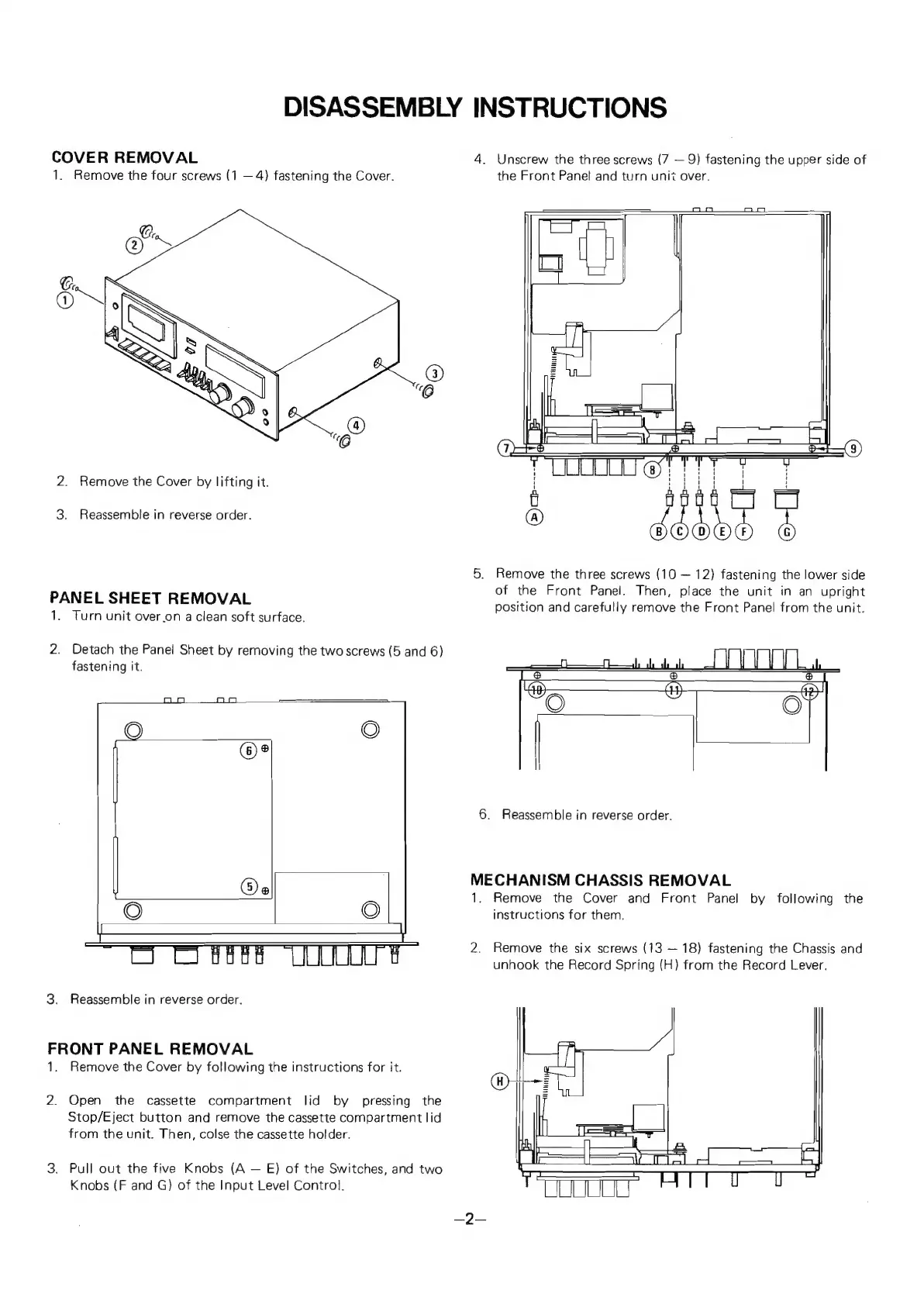 Sanyo RD 30 - Disassembly Instructions; Cover Removal Procedure; Panel Sheet Removal; Front Panel Removal Steps