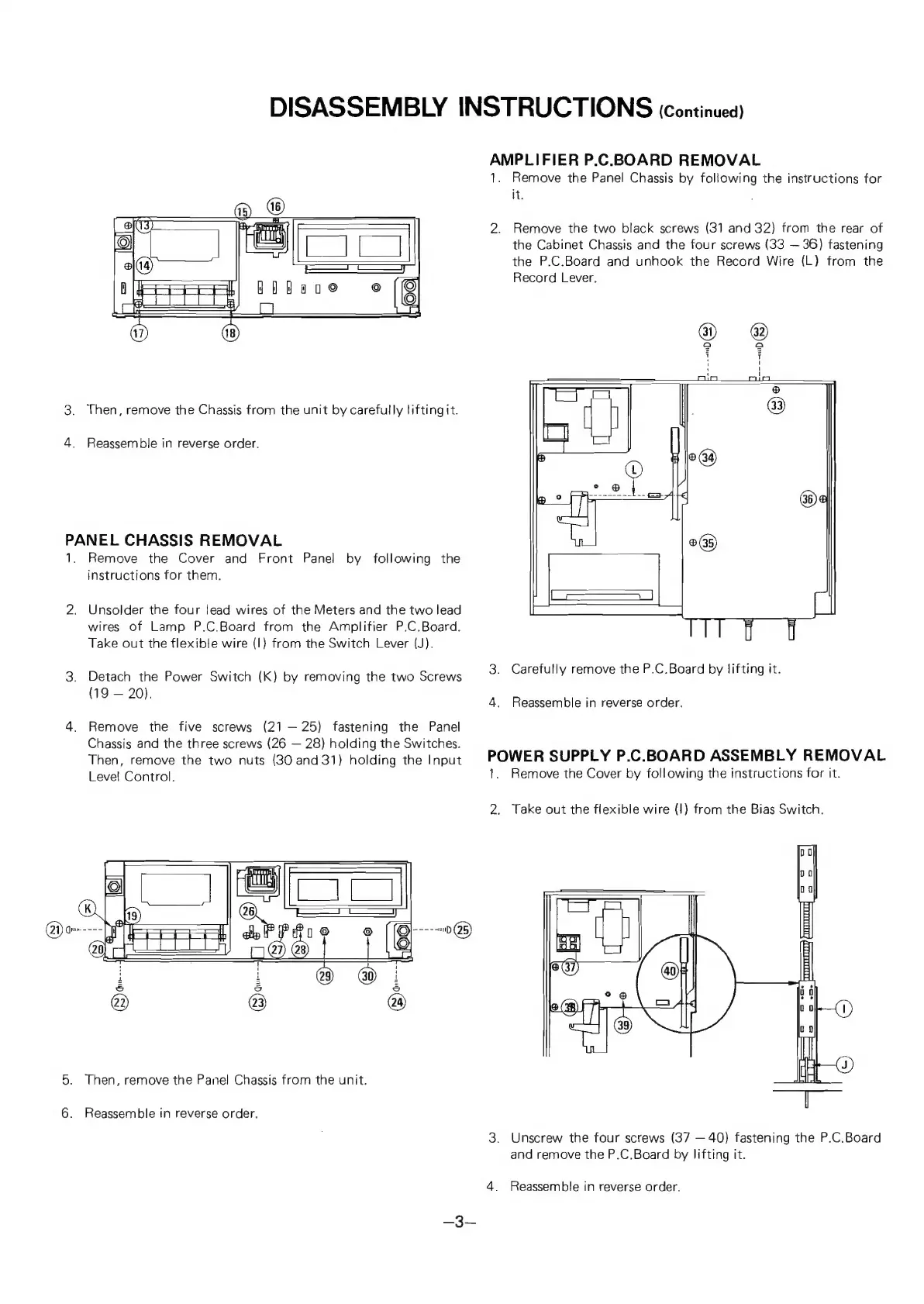 Sanyo RD 30 - Component Board Removal; Amplifier P.C.Board Removal; Panel Chassis Removal; Power Supply P.C.Board Removal