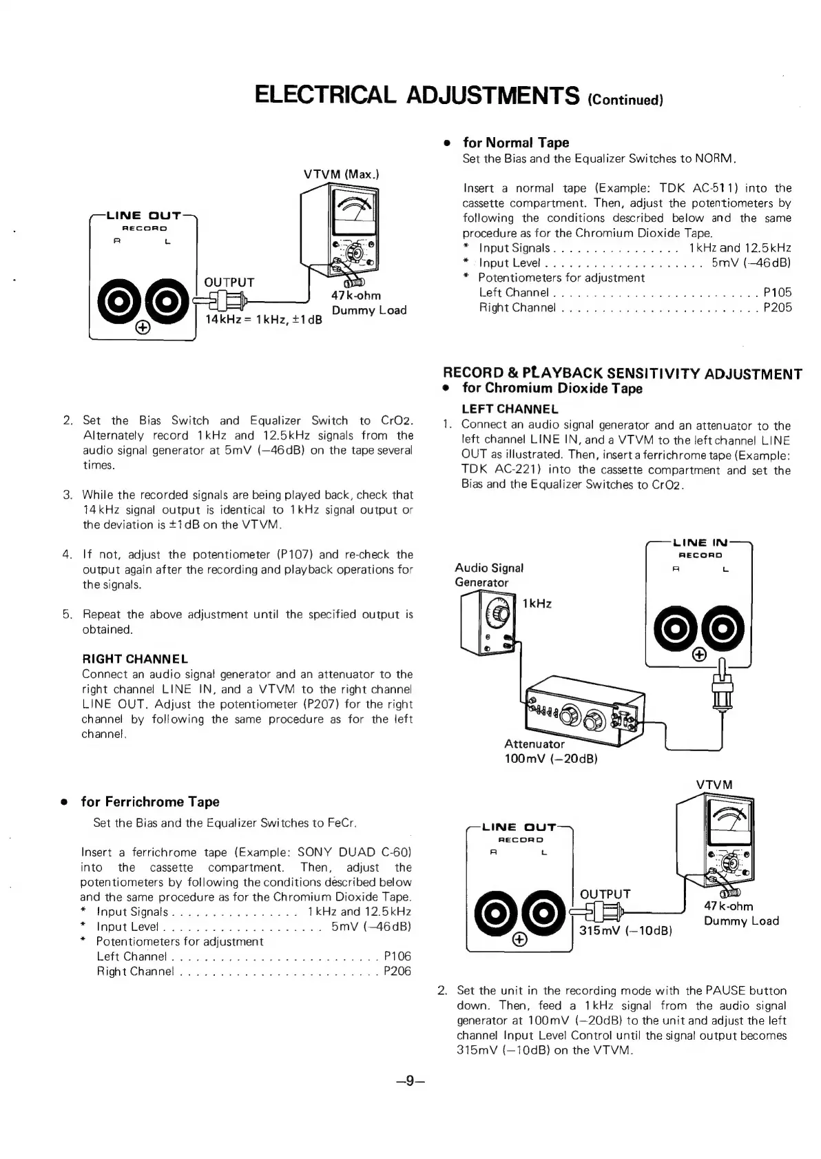 Sanyo RD 30 - Tape Sensitivity and Response Adjustments; Normal Tape Calibration; Chromium Dioxide Tape Calibration