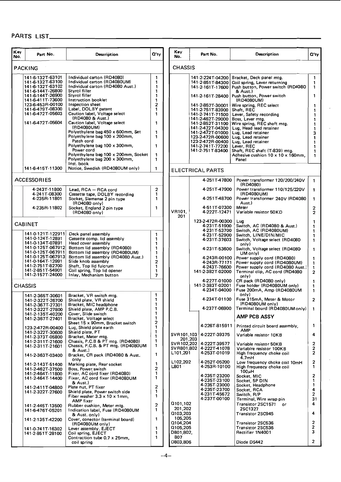 PARTS LIST