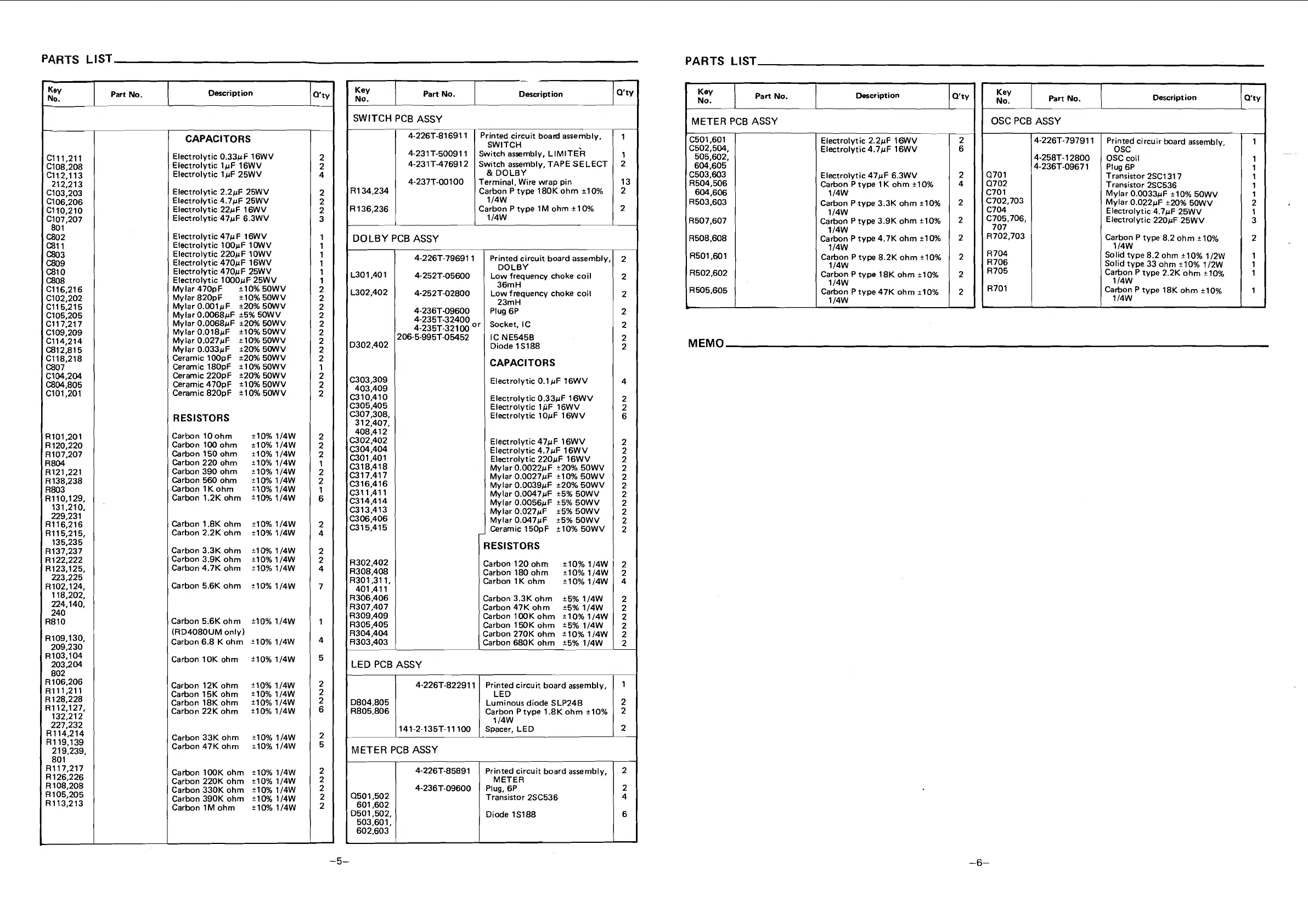 PARTS LlST