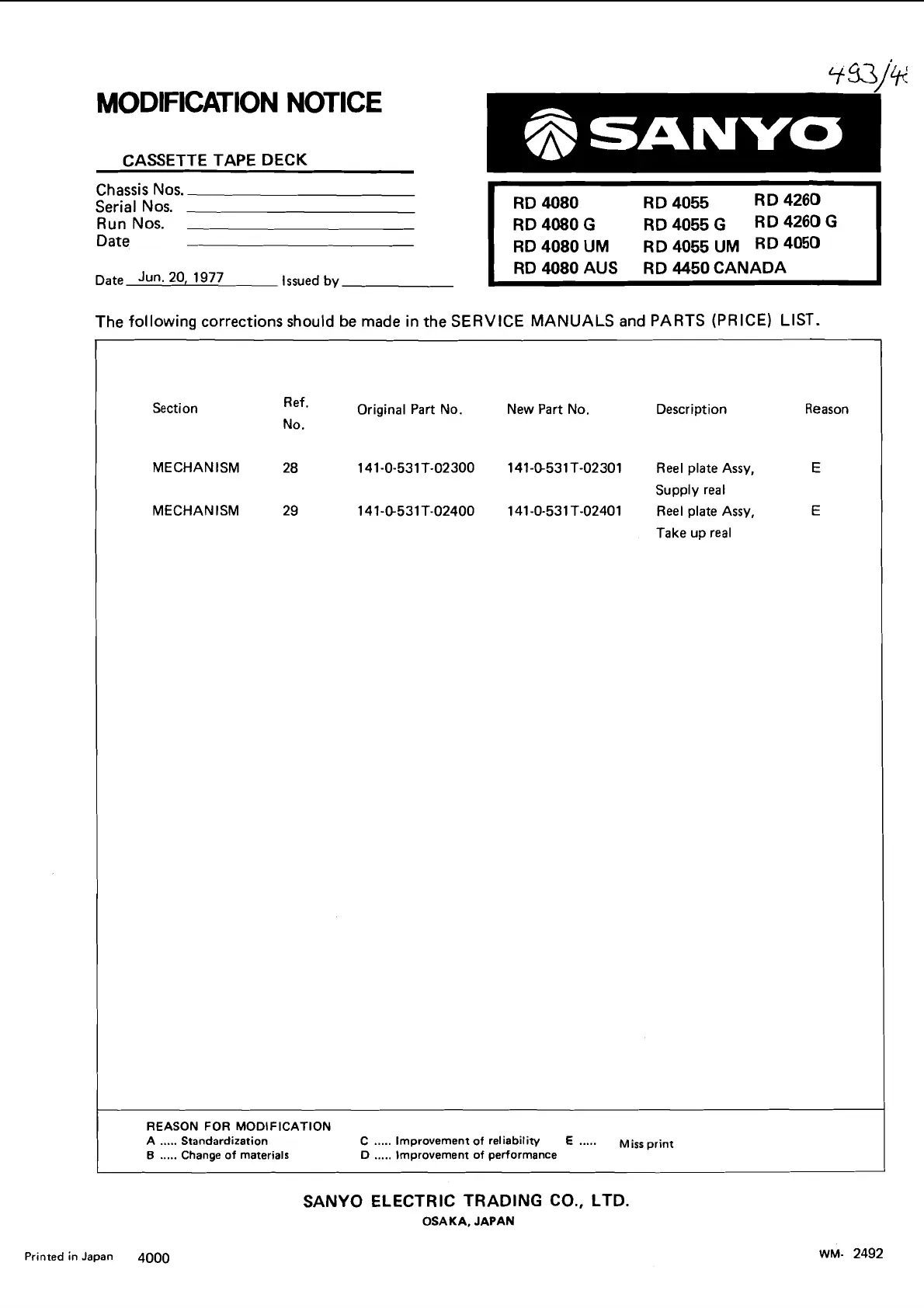 MODIFICATION NOTICE