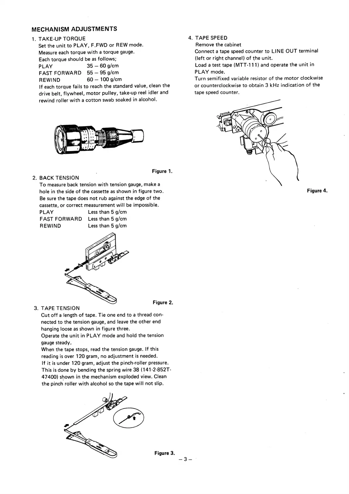 Sanyo RD5035 - Sanyo RD5035 Mechanism Calibration; Take-up Torque Adjustment; Back Tension Measurement; Tape Tension Adjustment
