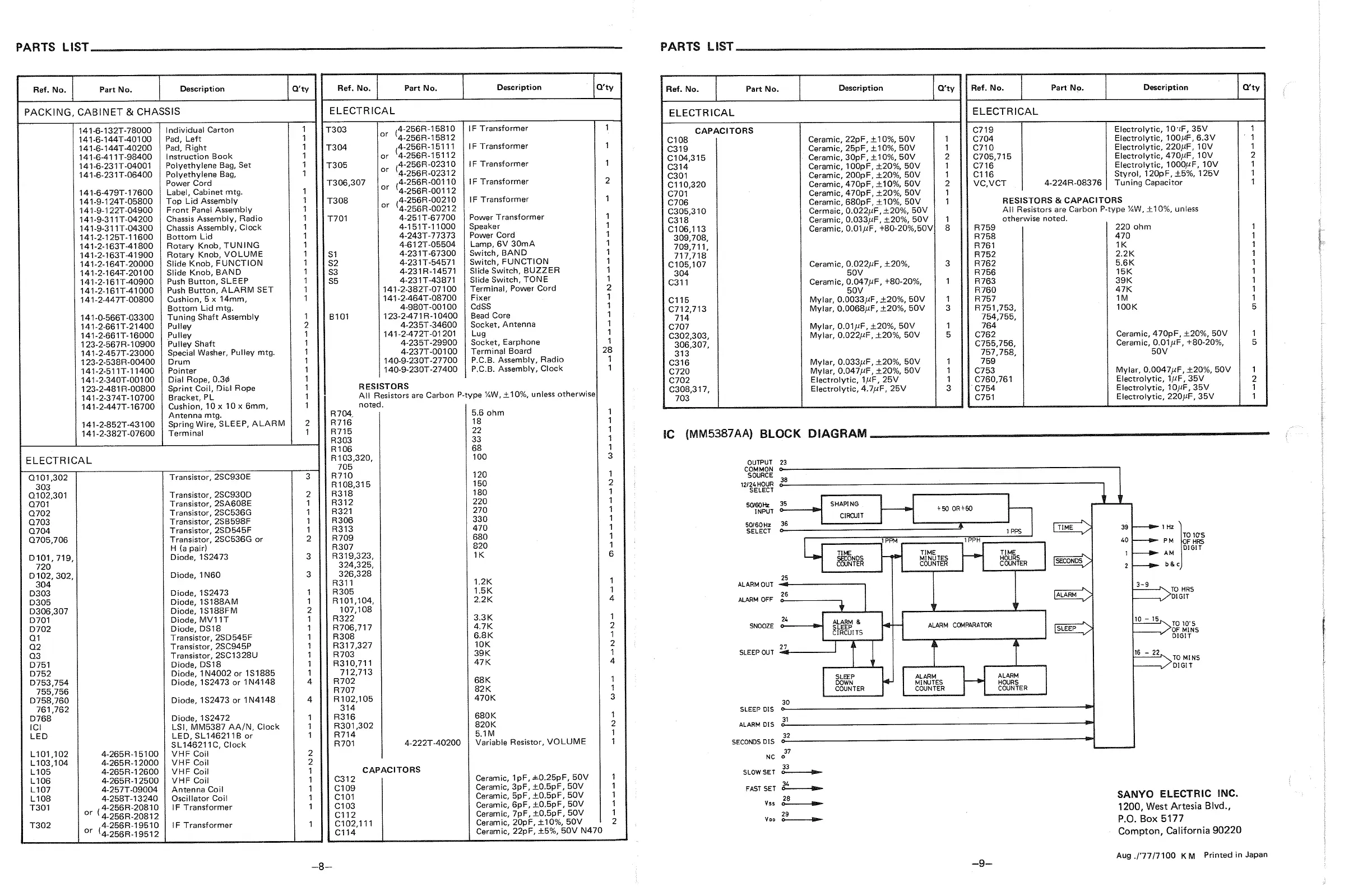Sanyo RM 5900 - Parts List