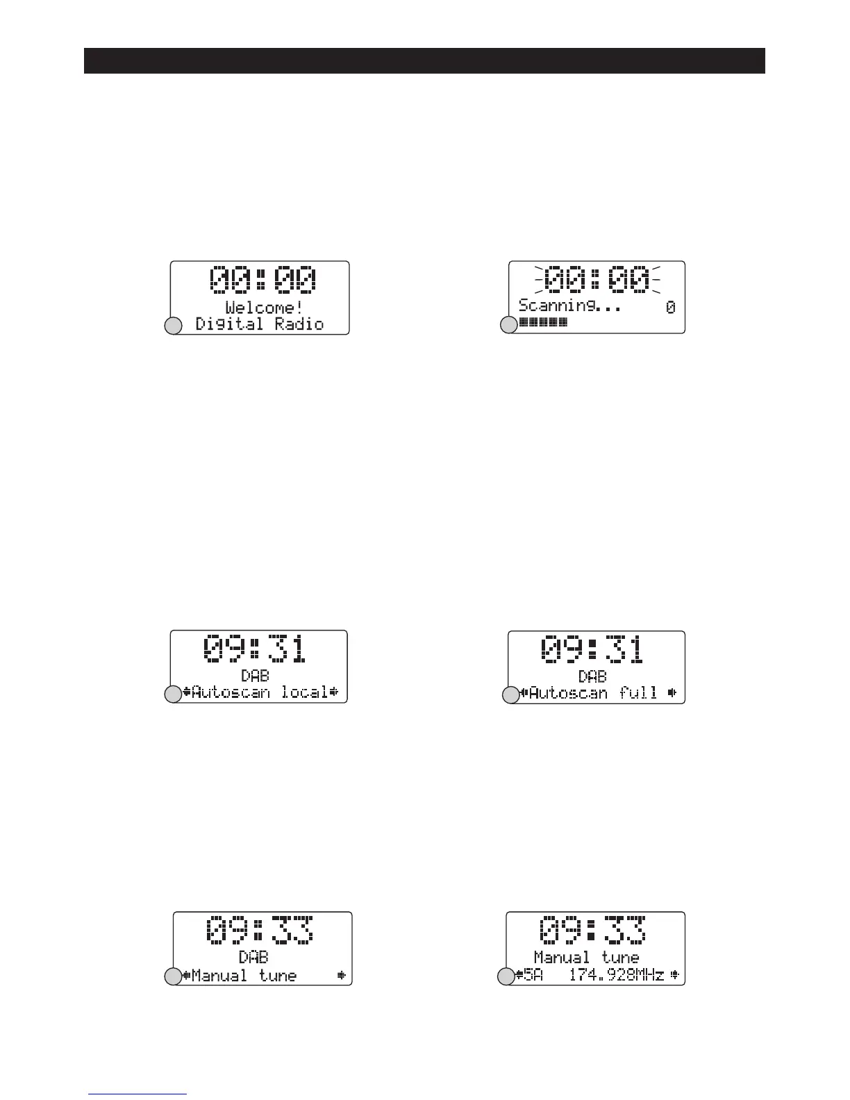 automatically enter into the DAB mode and perform auto scan function. During the scan the display