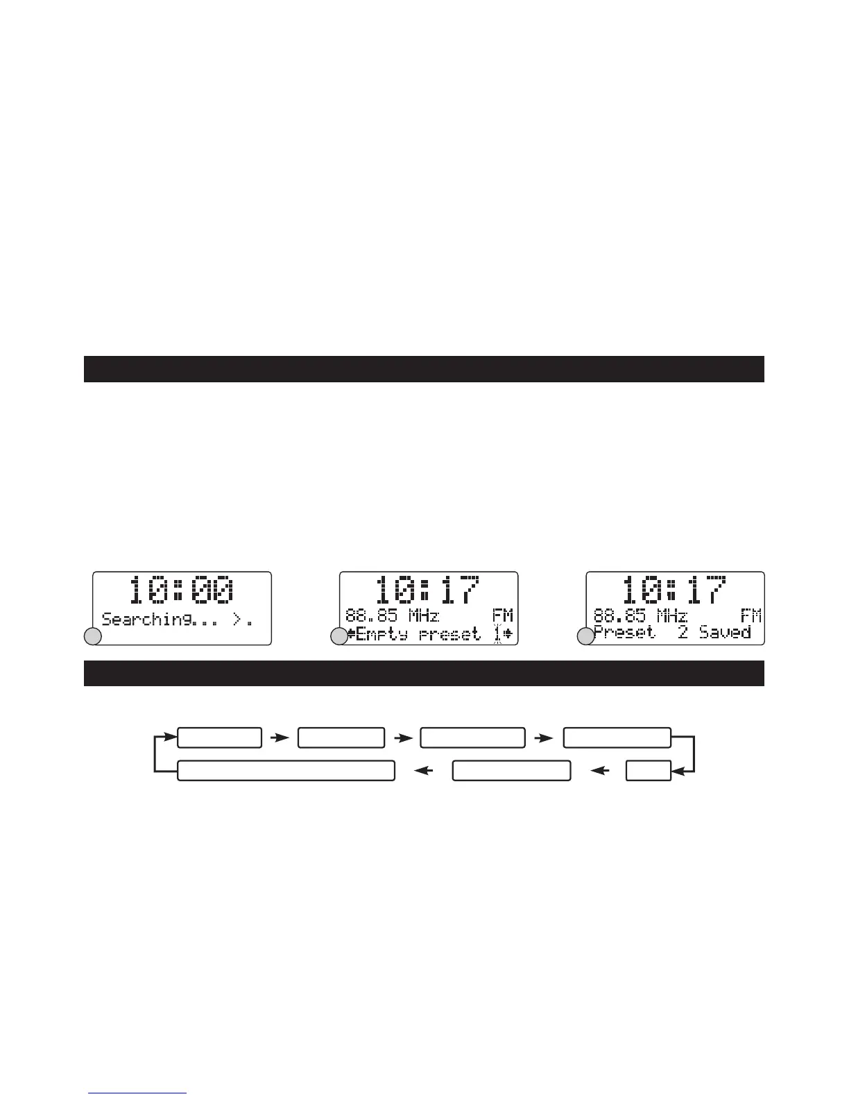 frequency band, the display will show “Searching …”, and it will stop automatically once a station