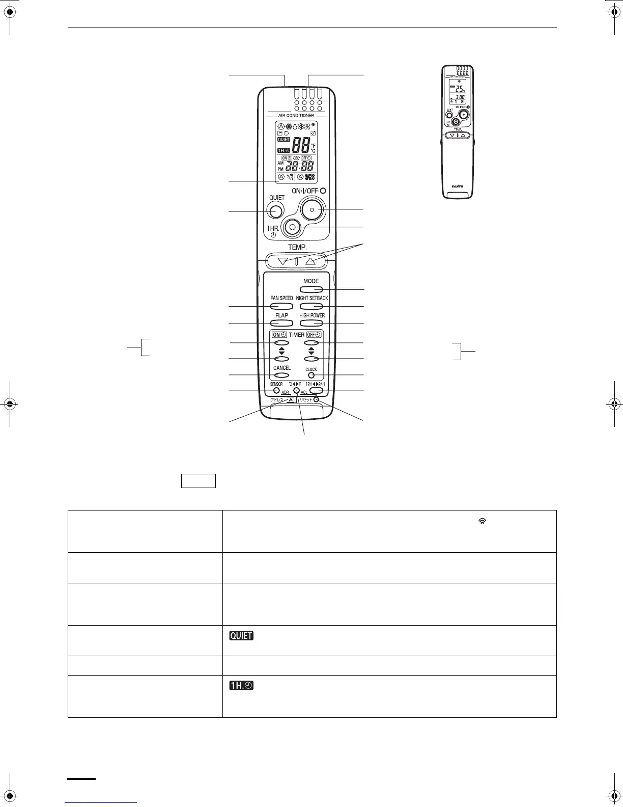 QUIET button : When you press this button, the fan rotates slower than the fan
