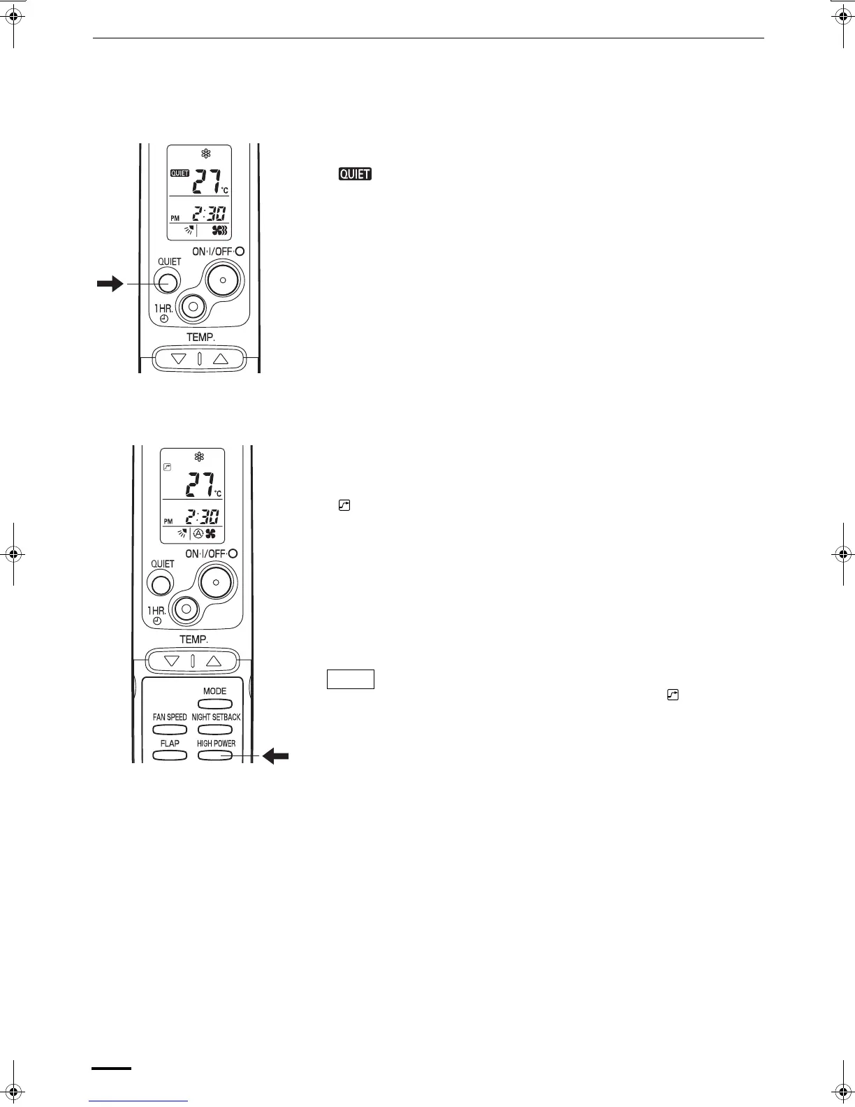 QUIET Mode is used to reduce the fan sound of the indoor unit.