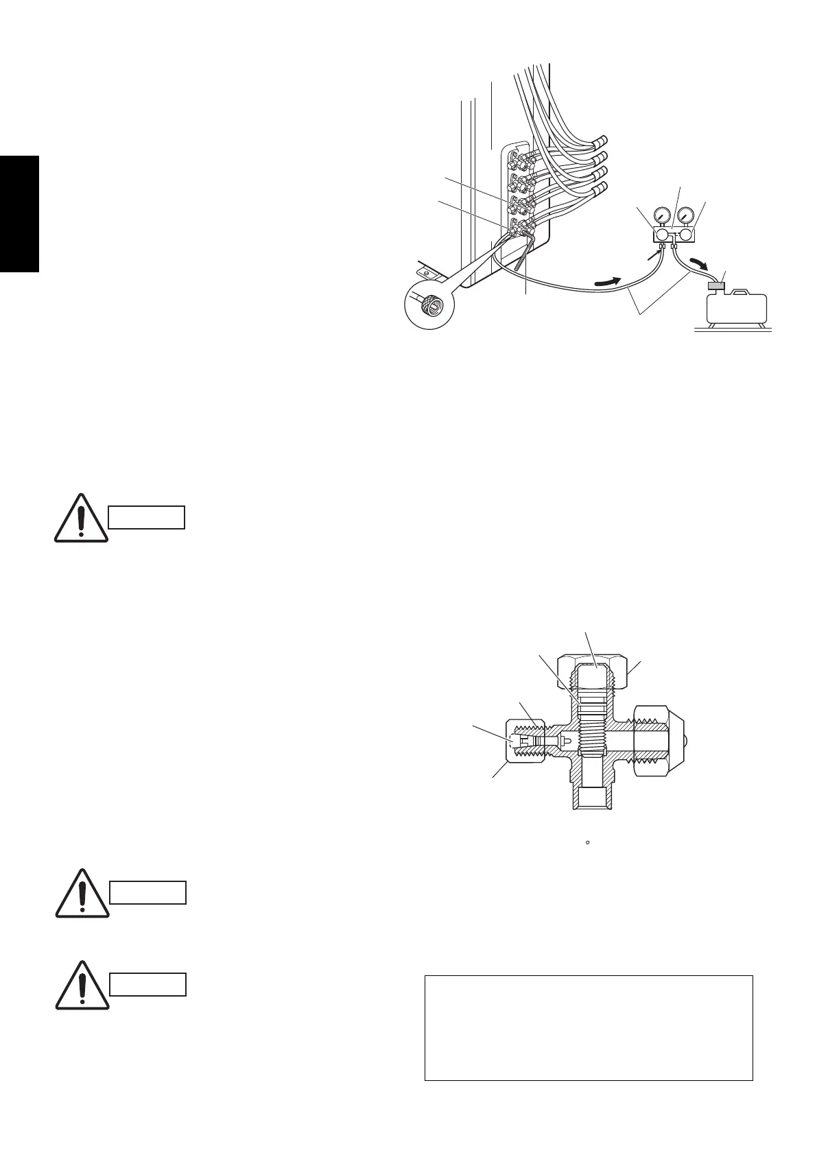 (Never perform an air purge by using the refrigerant
