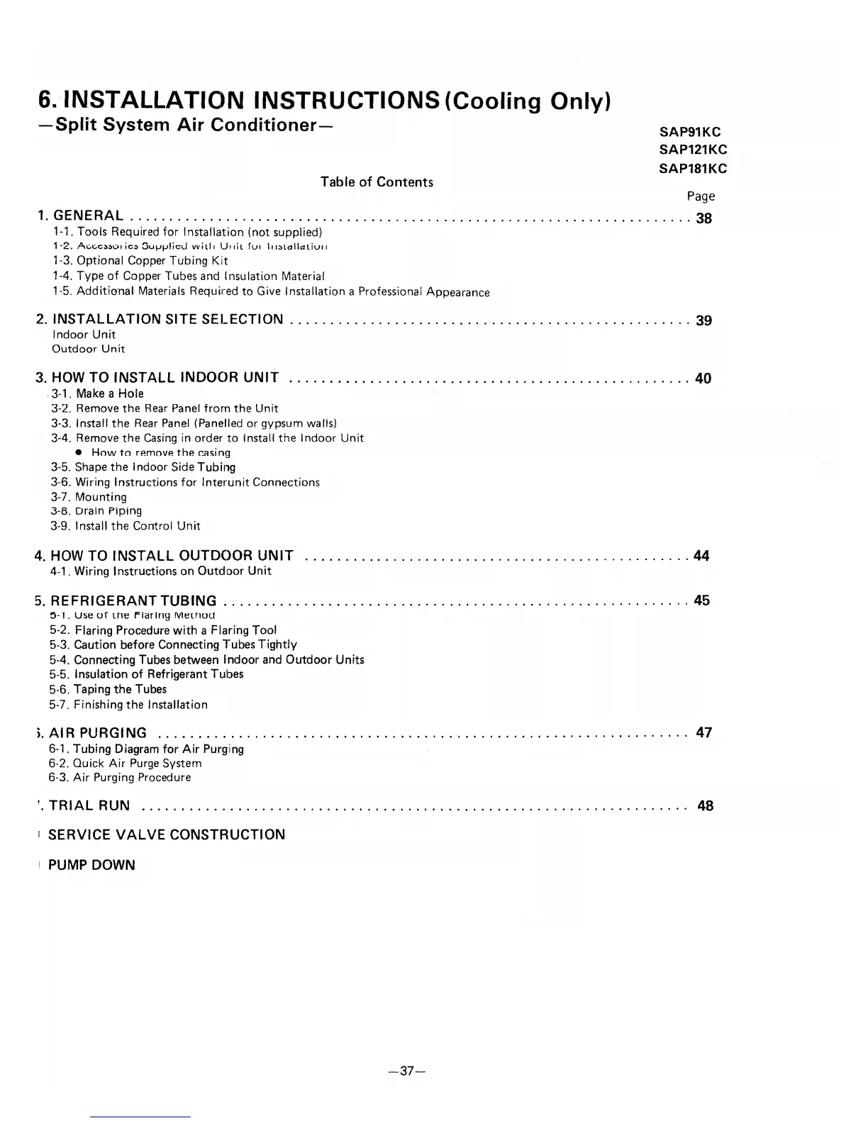 Sanyo SAP91KC - Installation Instructions