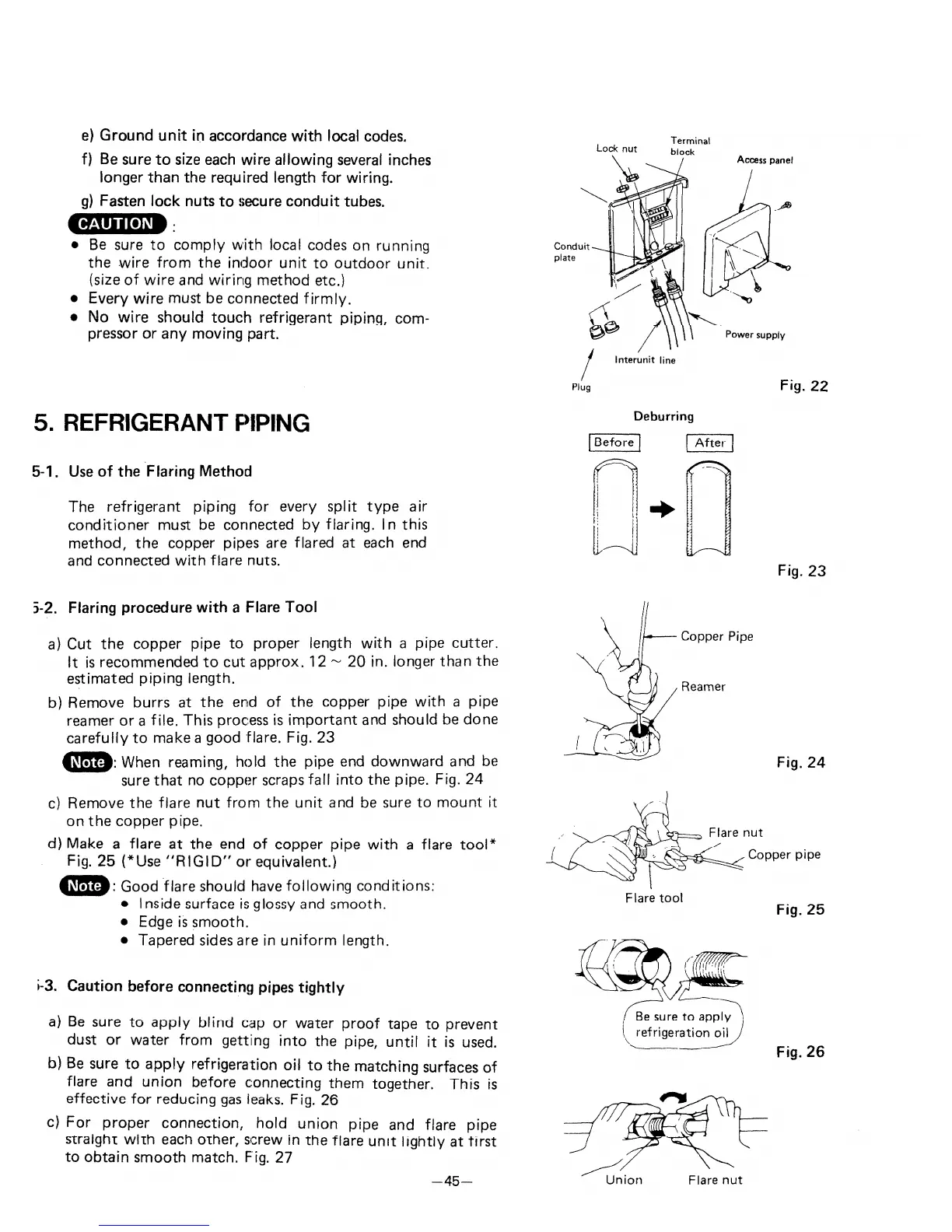 Sanyo SAP91KC - Refrigerant Piping; Use of the Flaring Method; Flaring Procedure with a Flare Tool; Caution before Connecting Pipes Tightlyt