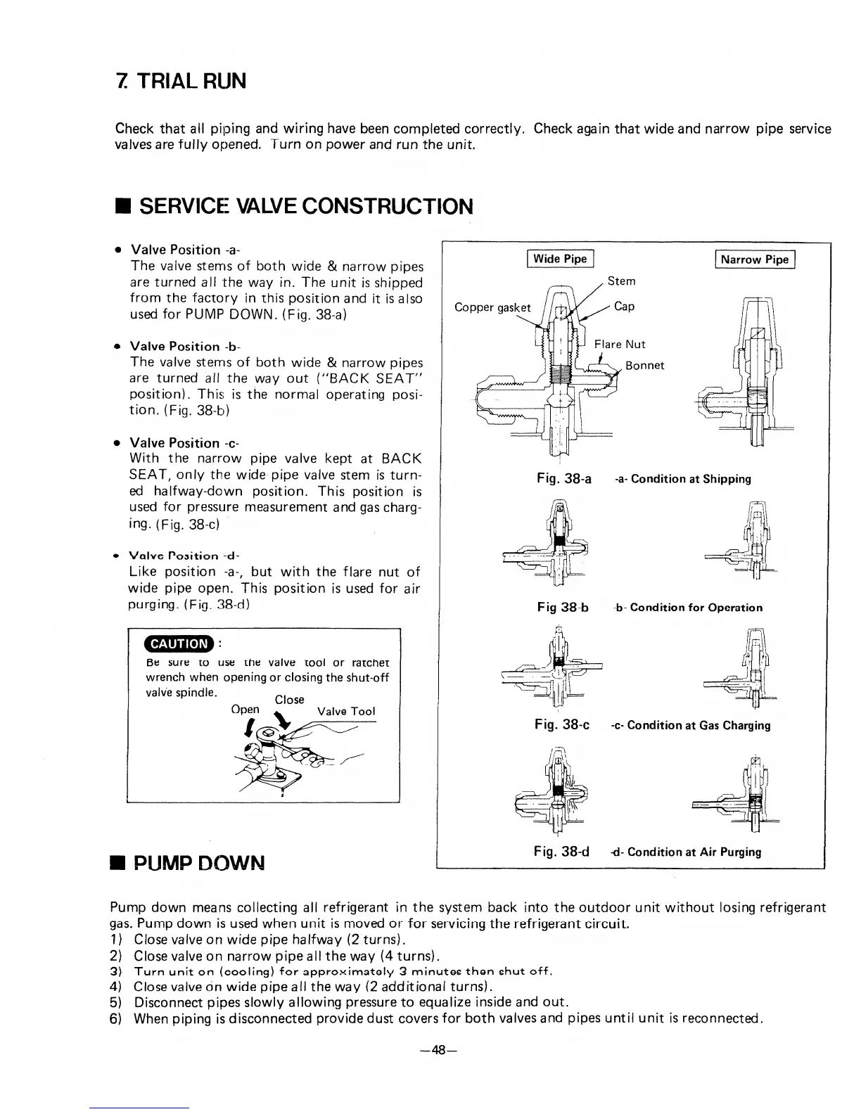 Sanyo SAP91KC - Trial Run; Service Valve Construction; Valve Position; Pump down