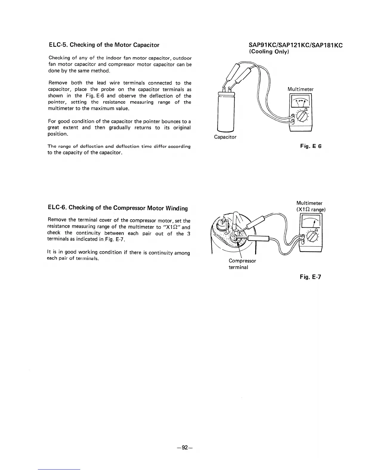 Sanyo SAP91KC - Checking of the Motor Capacitor; Checking of the Compressor Motor Winding