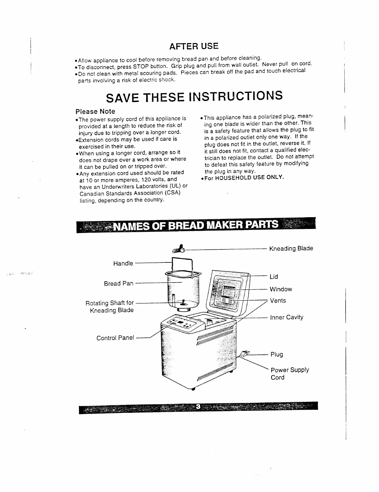 Sanyo SBM-150 - Names of Bread Maker Parts
