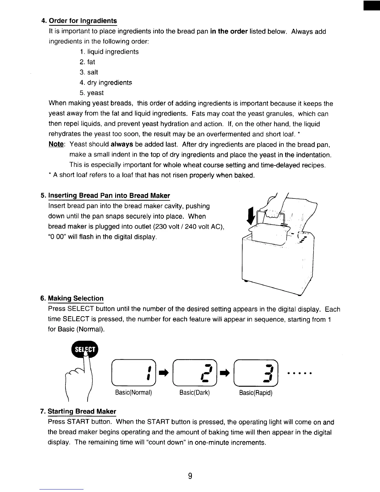 It is important to place ingredients into the bread pan in the order listed below. Always add