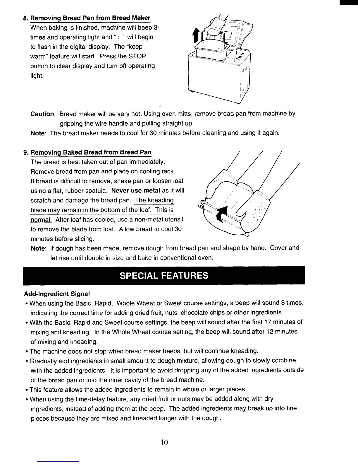 Caution: Bread maker will be very hot. Using oven mitts, remove bread pan from machine by