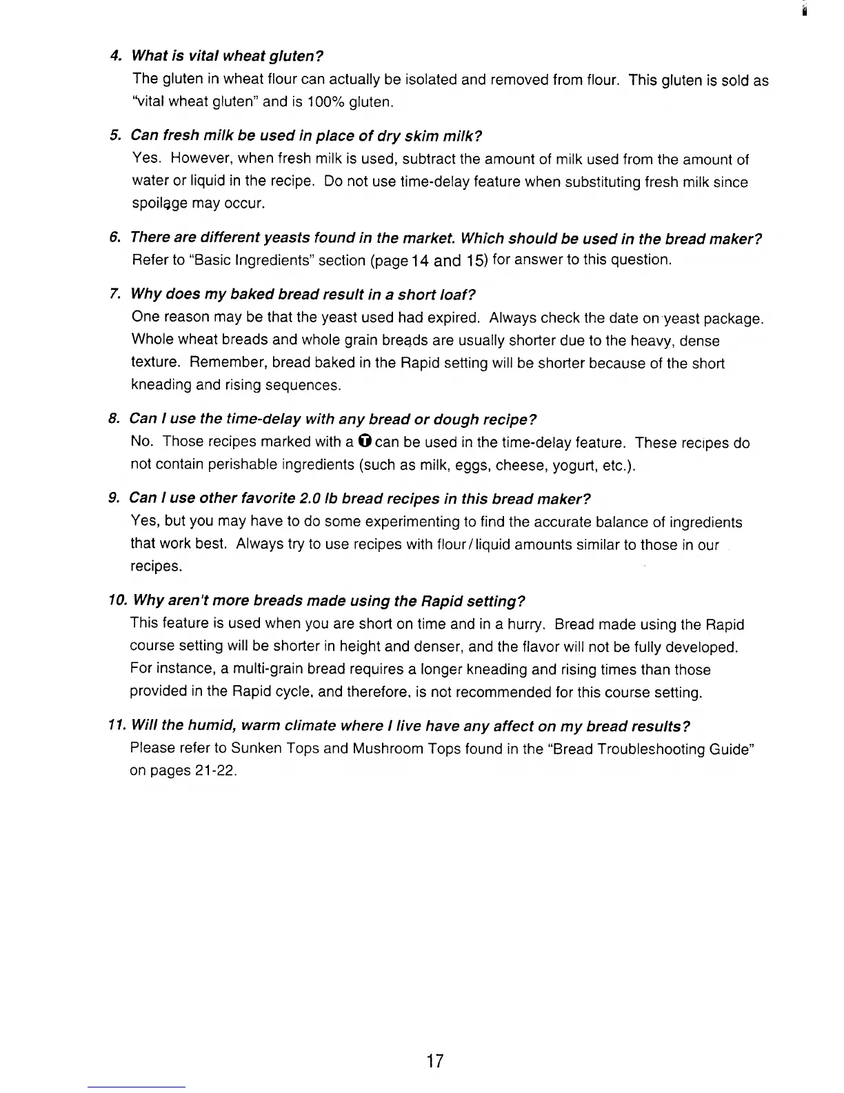 water or liquid in the recipe. Do not use time-delay feature when substituting fresh milk since