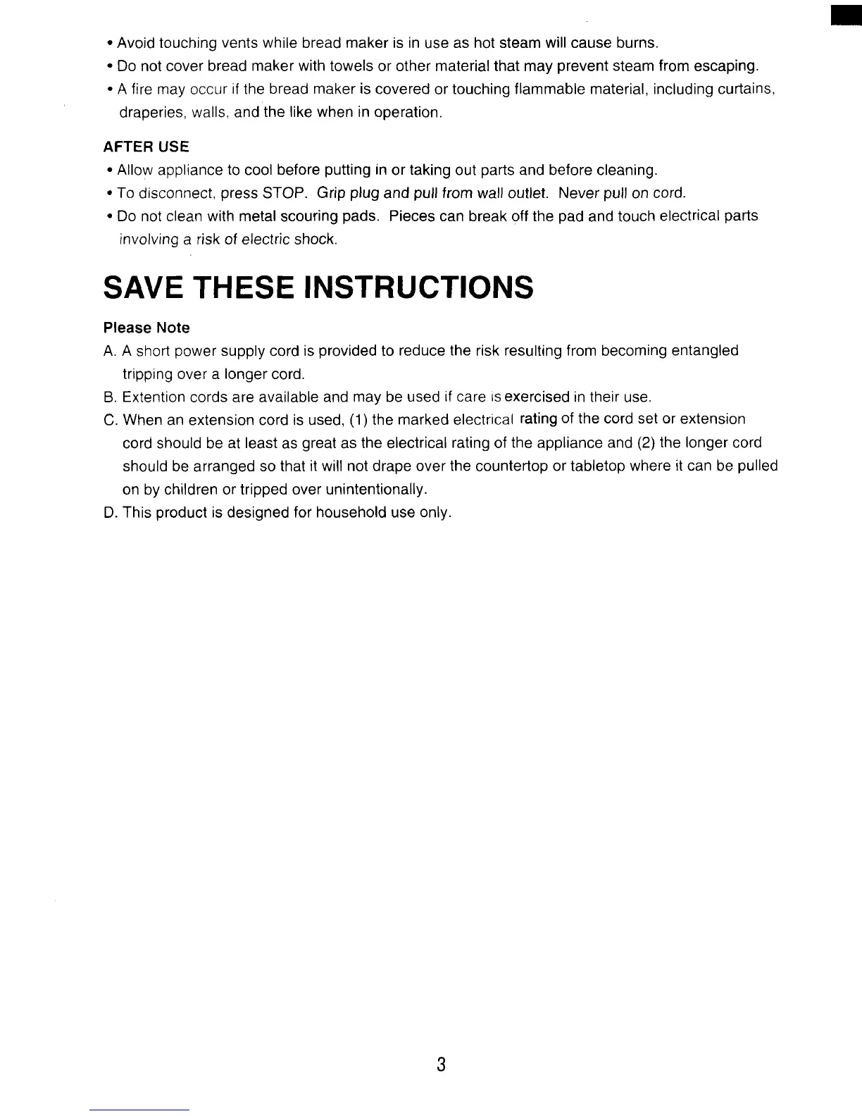 ● Do not cover bread maker with towels or other material that may prevent steam from escaping.