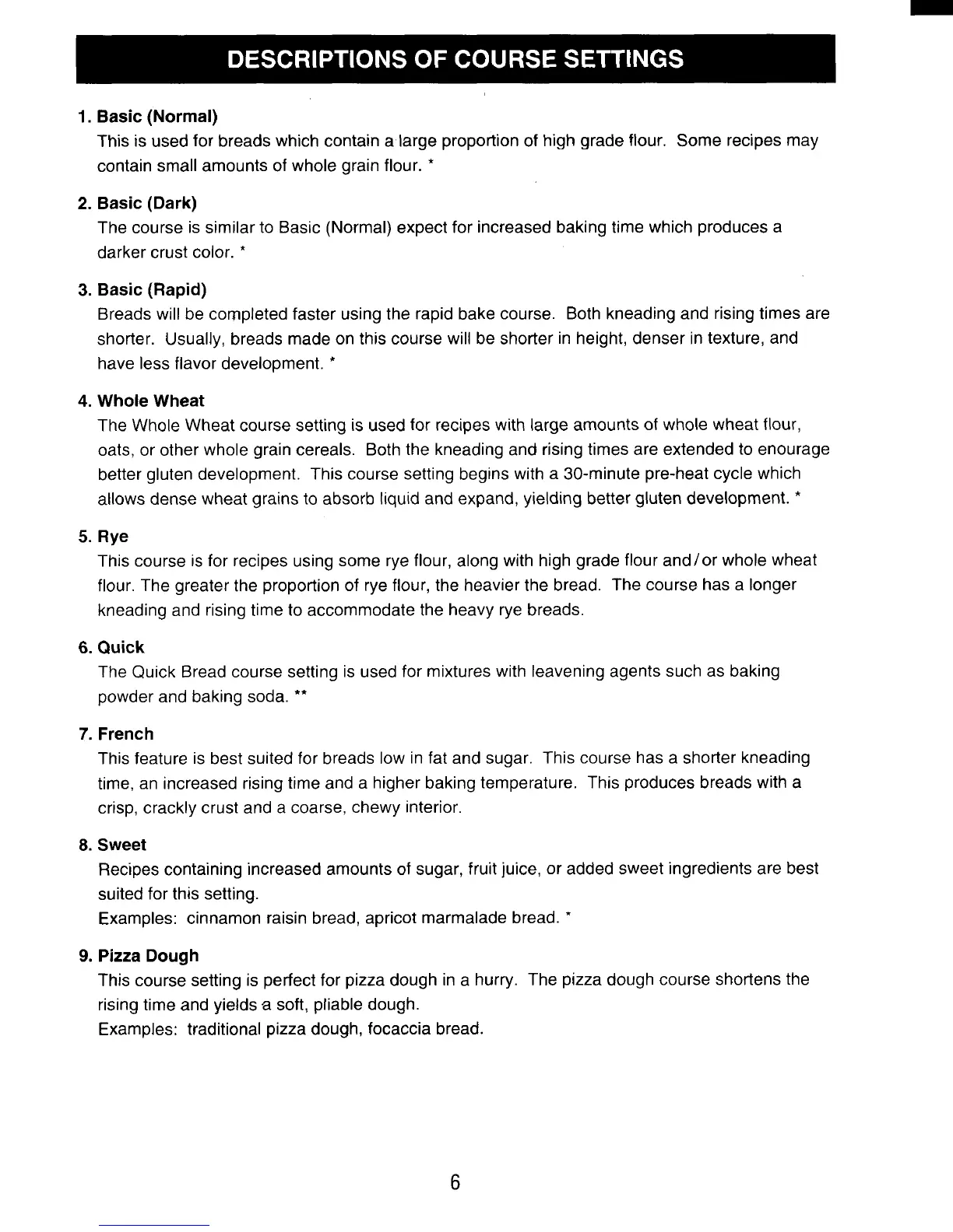 The Whole Wheat course setting is used for recipes with large amounts of whole wheat flour,